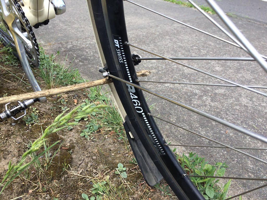 You can also get a stick in the spokes without fenders. This tends to bring the stick up to the fork, and the spoke breaks the stick, without jamming the front wheel. A stout-enough stick can jam the wheel, but this is less common.