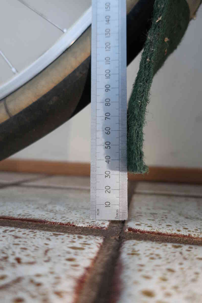The scouring pad is fairly thick, so to maintain tire clearance, the fender would need to move a significant distance (e.g., 10 mm).