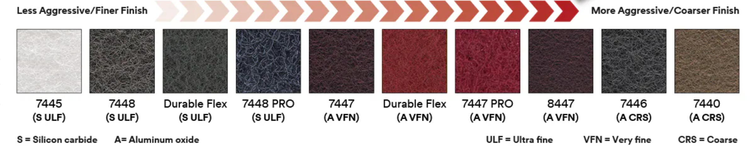 Scouring pads are used widely for many commercial/industrial tasks. A given task may use only some part of the range. You may find your local hardware store has one selection, the auto parts store something different, the local restaurant supply house yet something else.