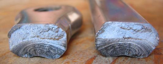 - Forward seatpost bolt failed. Bolt shows smooth/oxidized evidence of
