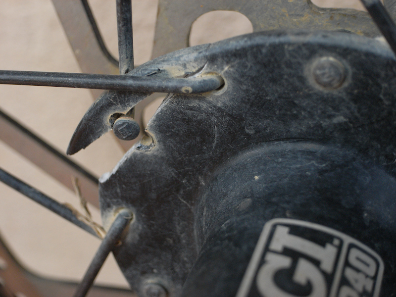 Service history and use unknown. There is no indication of the cause of the failure; it may have been the result of an accident rather than a hub problem.